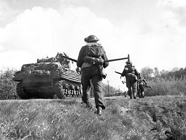 Au début de la guerre, l'engagement du Canada en Europe a été limité à une seule division. Le déploiement militaire du Canada demande une organisation de corps lors de l'invasion de l'Italie en 1943, de la Bataille de Normandie en 1944 et de la libération de la Belgique et des Pays-Bas en 1944 et 1945. Plus de 45 000 Canadiens ont perdu la vie et 54 000 autres ont été blessés au cours du conflit.